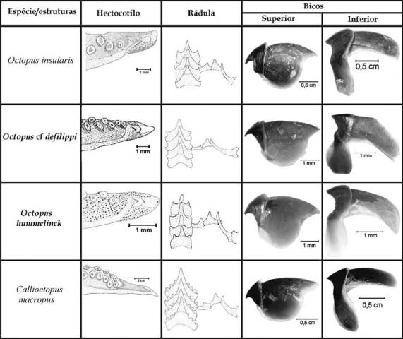 Tabela 2. Tabela com características das quatro espécies de polvos das ilhas oceânicas do NE do Brasil